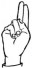 На ћирилици написано ВУКОСАВ ЋУШИЋ састоји се из 12 слова [?]. Исписано ћириличном једноручном азбуком за глувонеме: